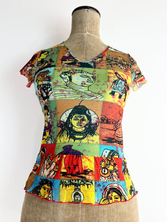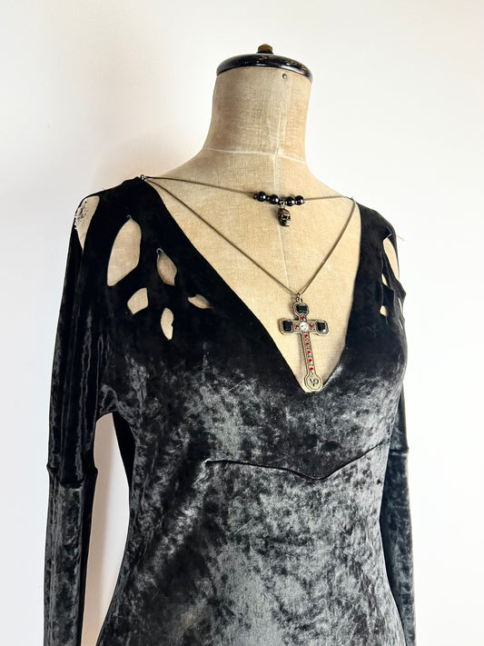 voyage passion long sleeve cutout velvet top with heavy brass charms, 2000s