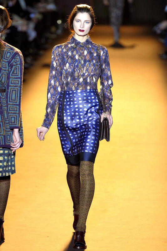rochas pattern blocked dress in silk, f/w 2012
