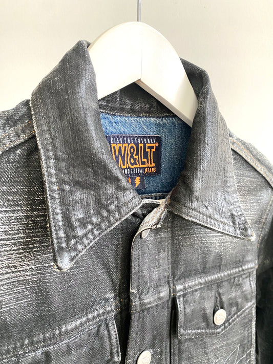 wild & lethal trash denim coated trucker jacket, late 90s/00s