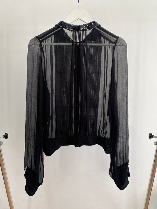 zucca silk chiffon blouse with puff sleeves and sequin collar, 00s