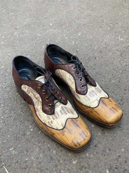 miu miu tri-tone lizard stamped derbies, f/w 2004