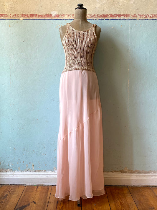 amaya arzuaga knit and chiffon maxi dress, 90s