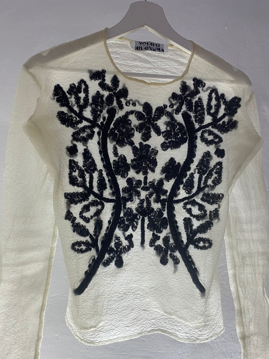 yoshiki hishinuma sheer top with floral embroidery, 1996