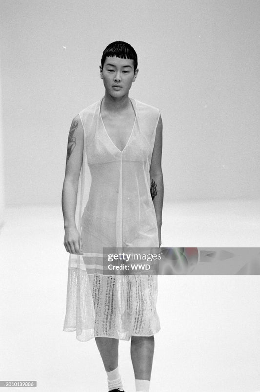 prada tulle and knit a-line dress, s/s 1994